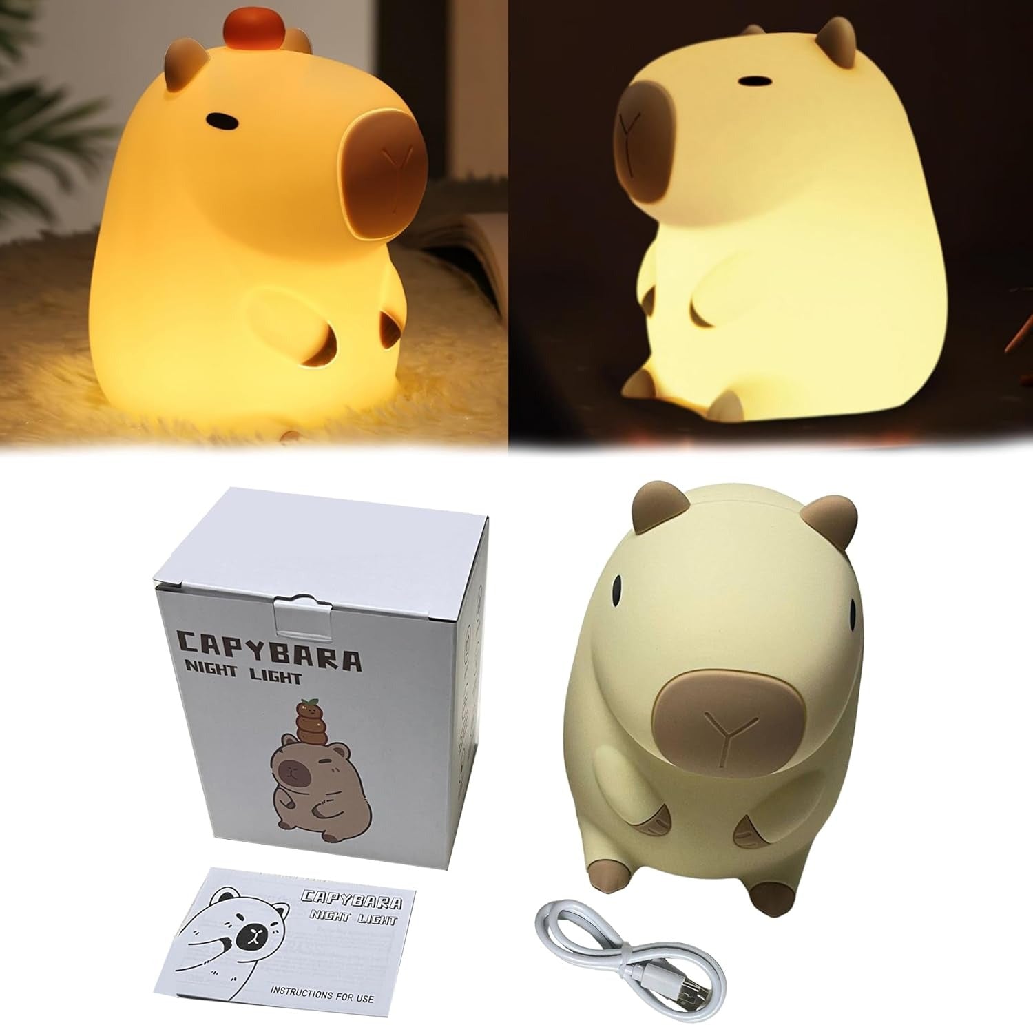 Haz que la hora de dormir sea más segura y acogedora con CapiLuz™, la lámpara nocturna con forma de capibara que enamora a grandes y chicos.