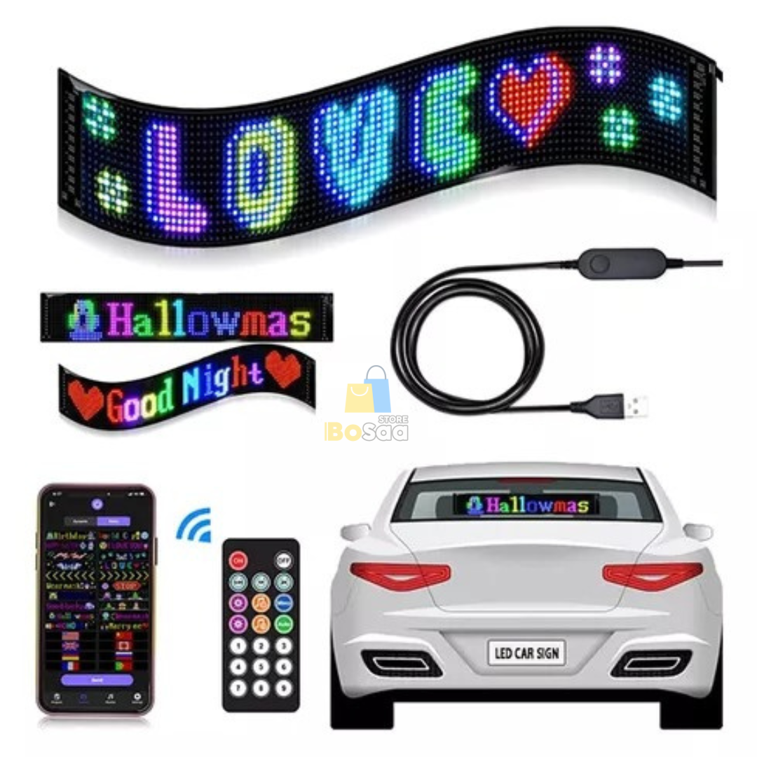 Transforma tu auto con esta pantalla LED flexible y colorida. Con su matriz de luces RGB, puedes crear mensajes, animaciones y patrones a través de una app 📲. ¡Exprésate y destaca en cada recorrido!